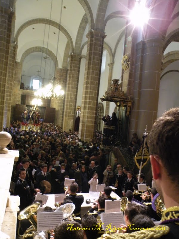 De nuevo nuestra Banda, después de la marchas interpretadas por la Banda Municpal de Música, se subieron a la escalinata para tocar algunas marchas más, tras lo cual se dió el acto por finalizado con una ovación de los "costaleros" a los chicos de nuestra agrupación